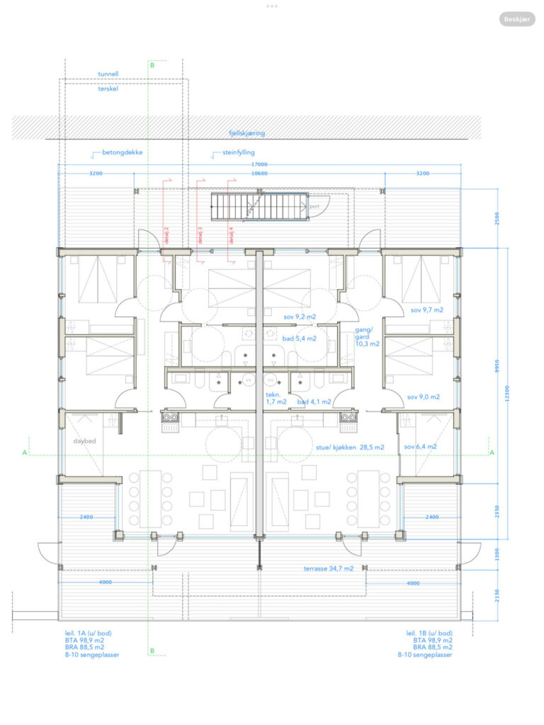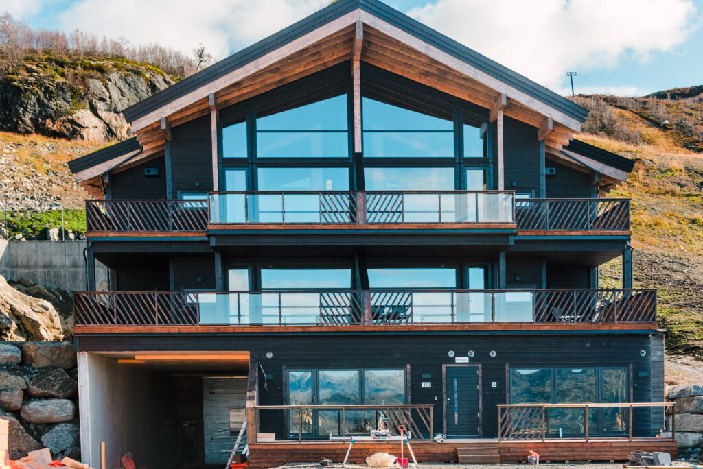 Energieffektiv fritid; delvis overbygde terrasser; dvs lite snømåking