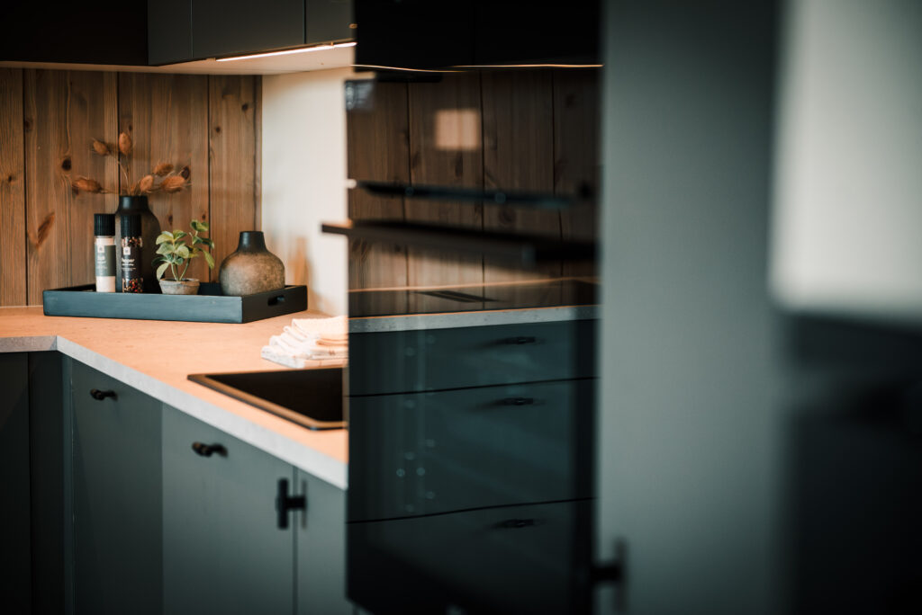Velutstyrt kvalitetskjøkken fra HTH med anerkjente hvitevarer, bl.a. AEG ventilator-koketopp