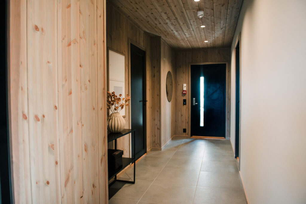 Ferdigbehandlet limtrepanel på innvendige vegger og himlinger