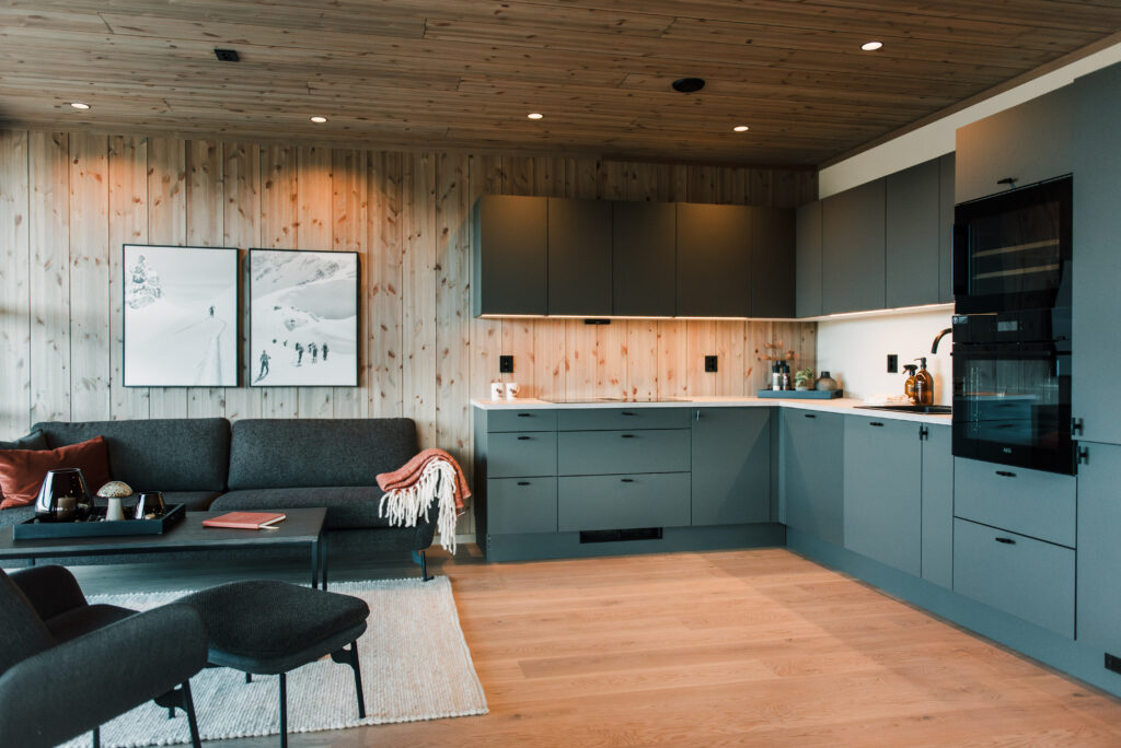 Benkebelysning kjøkken. Rikelig antall stikkontakter i alle rom.