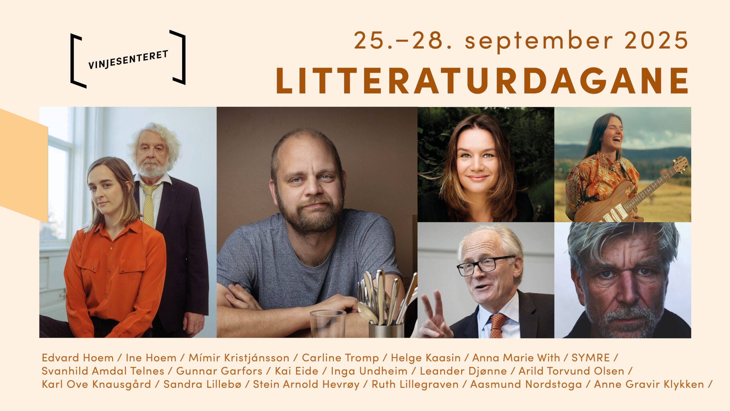 Litteraturdagane 25.-28.september Velkomen til Litteraturdagane og utdeling av Storegutprisen 2025! Litteraturdagane i Vinje vert arrangert for 24.gong og tema for årets festival er «impulsar». Impulsar kan vere