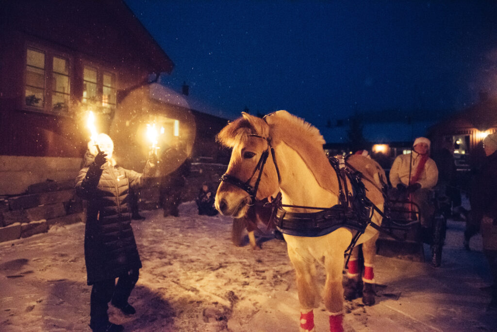 Me går i fakkeltog saman opp til julegrantenninga på Nordheimstunet. Fakkel får du utdelt ved Fjellvang.