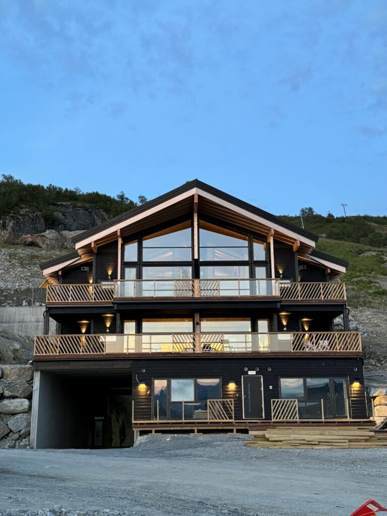 Energieffektiv fritid; delvis overbygde terrasser; dvs lite snømåking