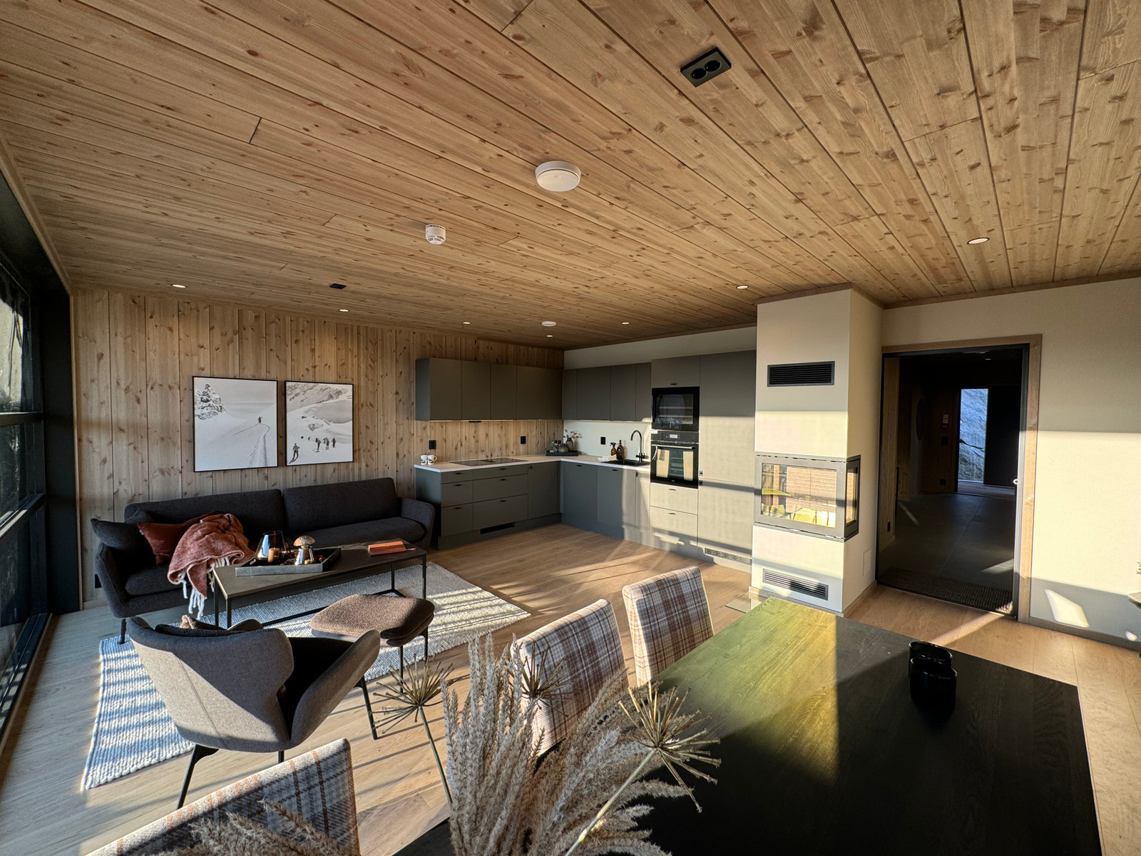 Ferdigbehandlet limtrepanel på innvendige vegger og himlinger