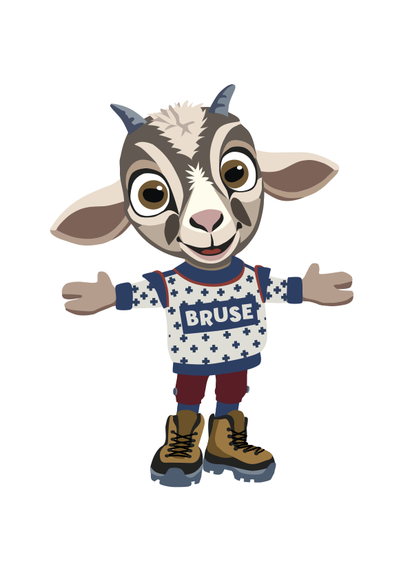 Han elskar fjellet og dei fine dagane ute, det er umogleg å ikkje smile når den vesle bukken kjem trippande. Bruse er nysgjerrig, modig og full av pågangsmot, og aller mest likar han å møte nye vener på vegen. Når snoen legg seg over Vinje er Bruse ofte å sjå ute i vinterlandskapet.