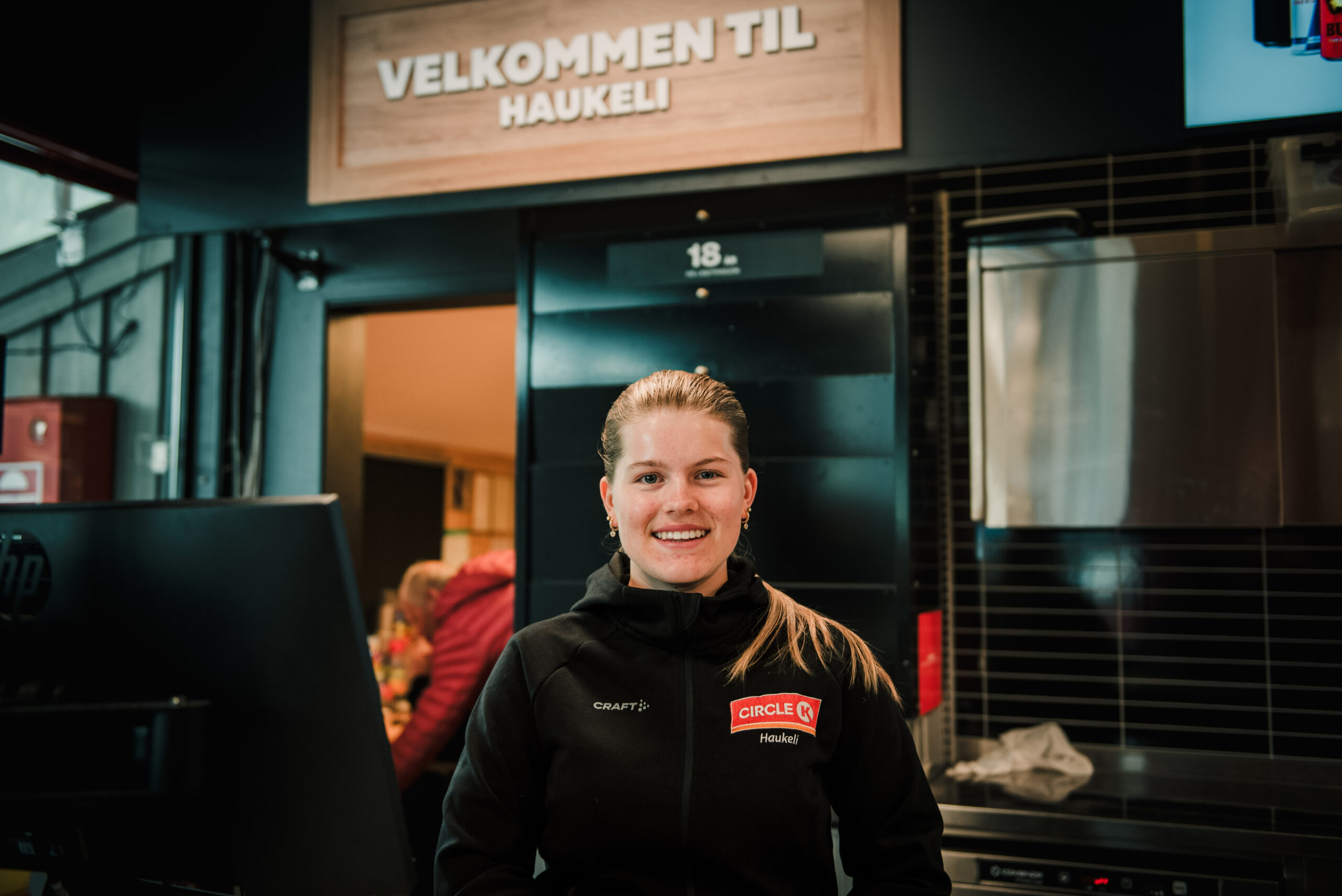 Malin Apeland jobbar på Circle K nede i bygda i Haukeli. Ho har jobba her i om lag eitt år, også som ekstrajobb i helger og feriar elles i året. Ho fortel at det er eit godt arbeidsmiljø på stasjonen og at det er fint å tene eigne pengar. Noko av det ho lærer gjennom jobben er å ta ansvar, samt å snakke med framande. Litt språktrening blir det òg. Eg må snakke ein del engelsk på sommaren med turistane, og det er litt uvant, men eg får som regel fram det eg vil sei, ler ho.